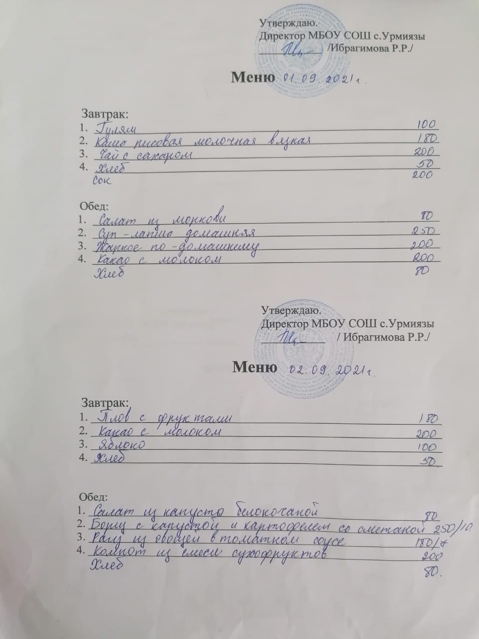 утвержденное меню (7-11 лет и 12 лет и старше) в разделе 10-ти дневное меню:
