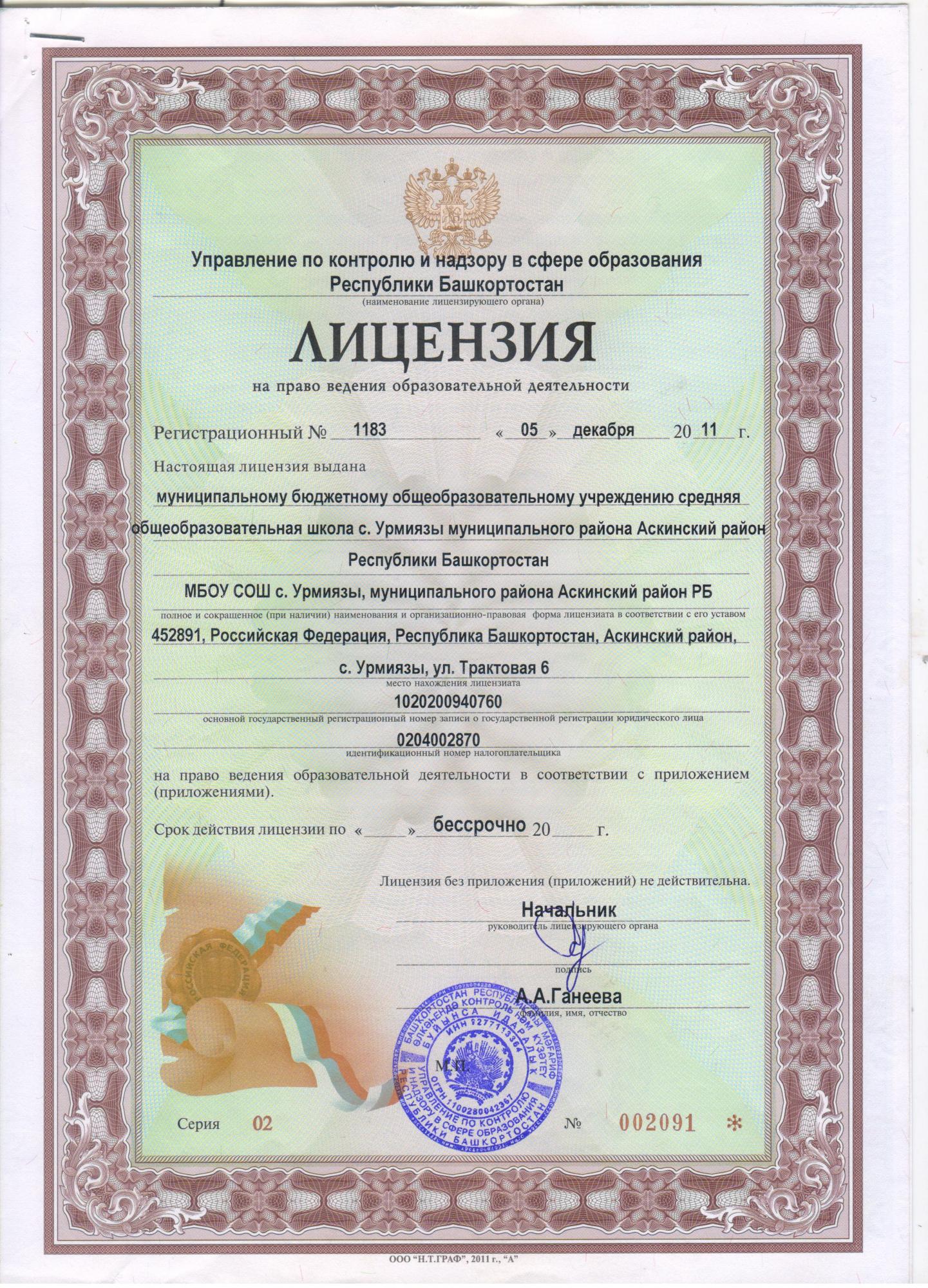 Информация о лицензии на осуществление образовательной деятельности