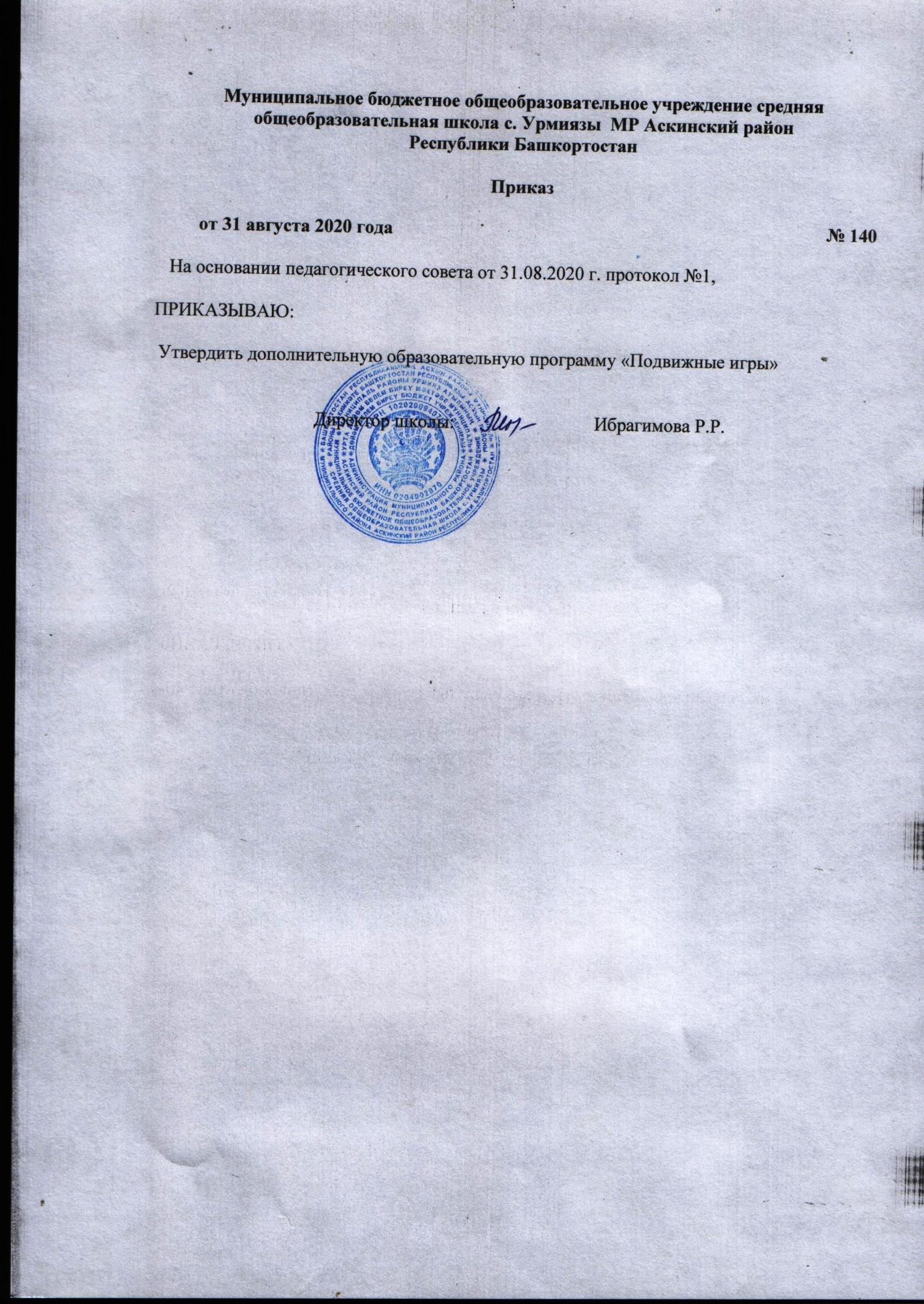 Муниципальное бюджетное общеобразовательное учреждение средняя общеобразовательная школа с.Урмиязы муниципального района Аскинский район Республики Башкортостан